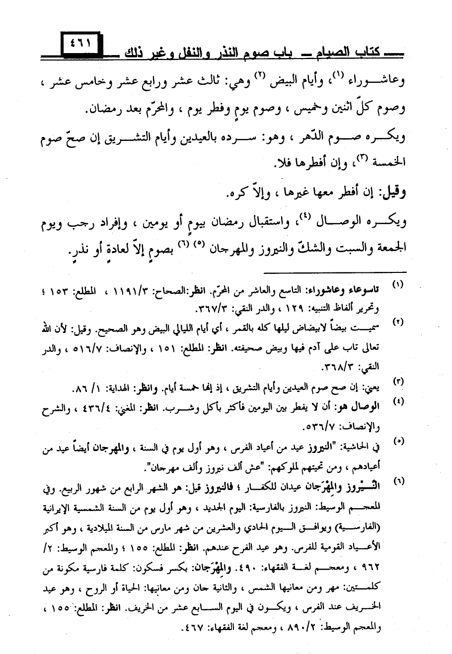 ويكره الوصال، واستقبال رمضان بيومٍ أو يومين، وإفراد رجب ويوم الجمعة والسبت والشك والنيروز والمهرجان، بصومٍ إلا لعادةٍ أو نذرٍ.