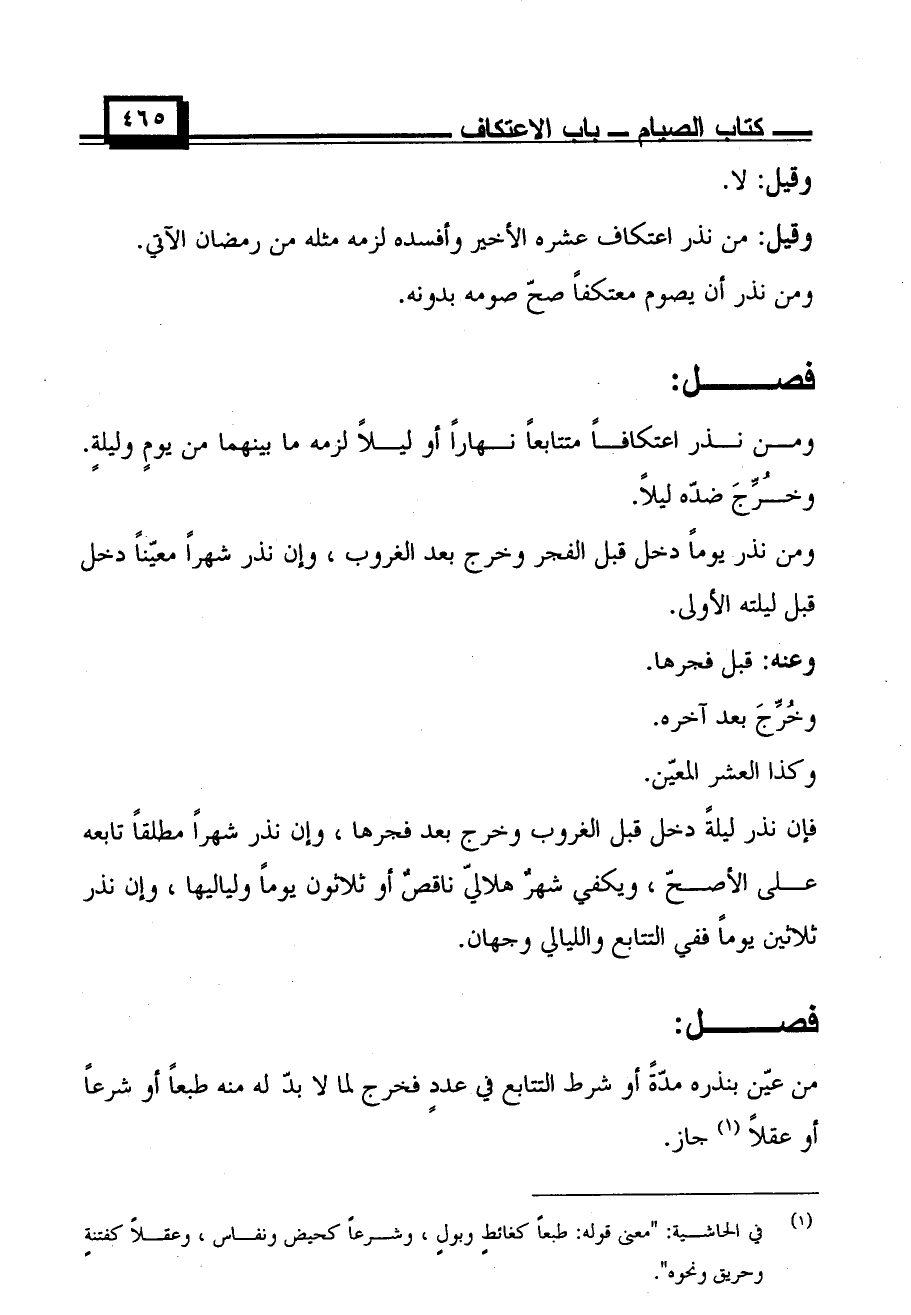 من عين بنذره مدة أو شرط التتابع في عددٍ فخرج لما لا بد له منه طبعًا أو شرعًا أو عقلًا جاز.