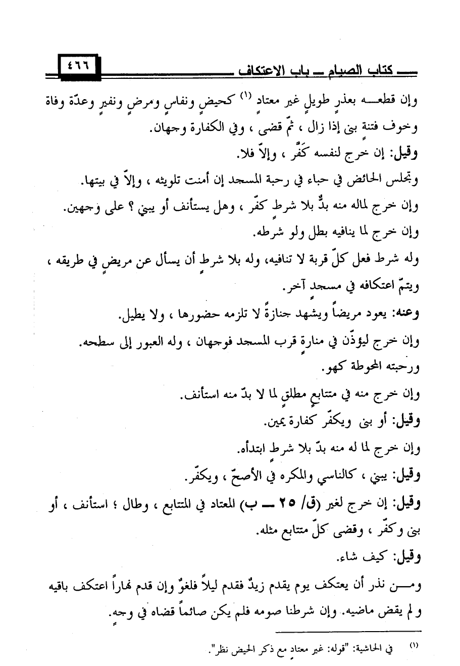وقيل: إن خرج لغير المعتاد في المتتابع، وطال؛ استأنف، أو بنى وكفر، وقضى كل متتابع مثله.