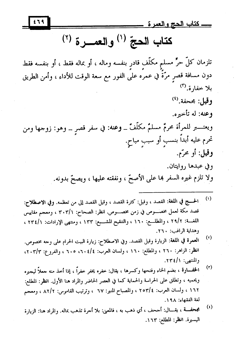 تلزمان كل حر مسلم مكلفٍ قادرٍ بنفسه وماله، أو بماله فقط، أو بنفسه فقط دون مسافة قصرٍ مرة في عمره على الفور مع سعة الوقت للأداء، وأمن الطريق بلا خفارة.