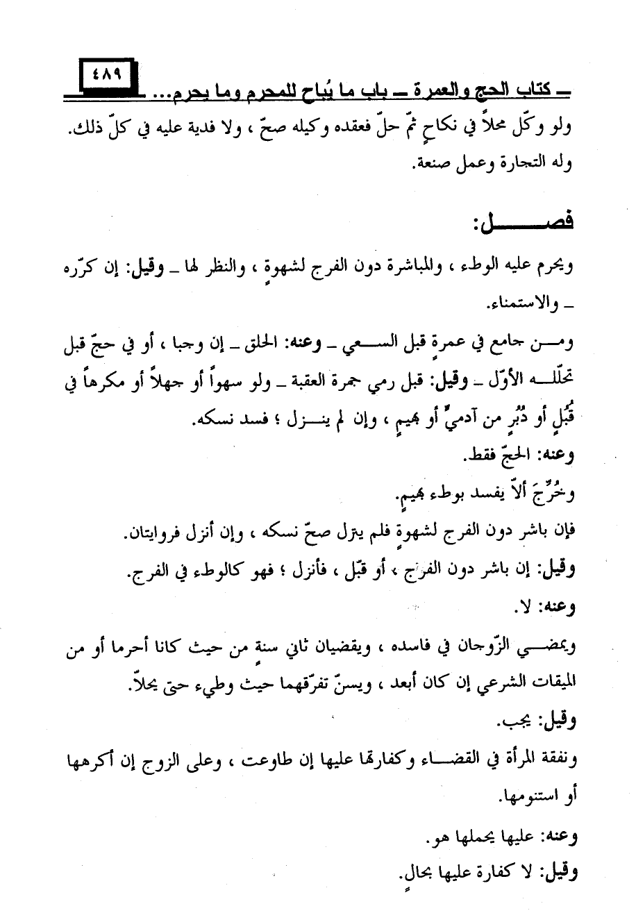 ومن جامع في عمرةٍ قبل السعي- وعنه: الحلق- إن وجبا، أو في حج قبل تحلله الأول- وقيل: قبل رمي جمرة العقبة- ولو سهوًا أو جهلًا أو مكرهًا في قبلٍ أو دبرٍ من آدمي أو بهيمٍ، وإن لم ينزل؛ فسد نسكه.