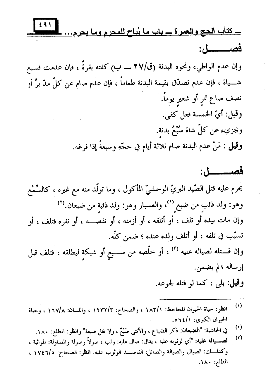 يحرم عليه قتل الصيد البري الوحشي المأكول، وما تولد منه مع غيره، كالسمع وهو: ولد ذئبٍ من ضبعٍ، والعسبار وهو: ولد ذئبةٍ من ضبعان.