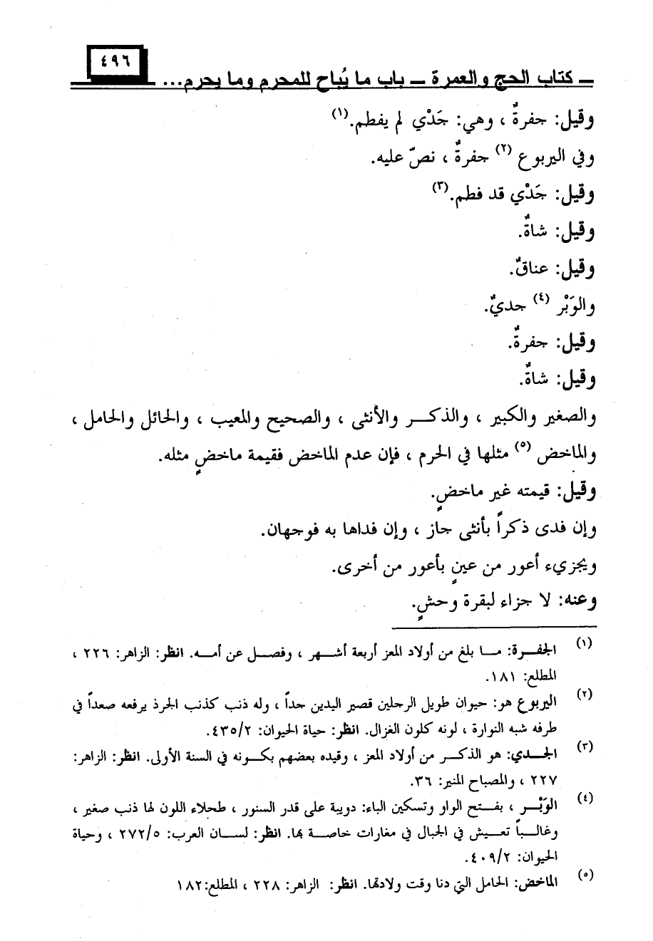 والصغير والكبير، والذكر والأنثى، والصحيح والمعيب، والحائل والحامل، والماخض مثلها في الحرم، فأن عدم الماخض فقيمة ماخضٍ مثله.