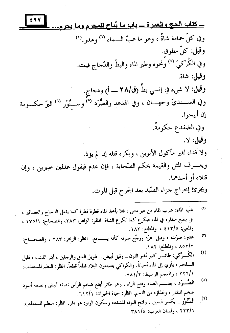 وفي السندي وجهان، وفي الهدهد والصرد وسنور البر حكومة إن أبيحوا.