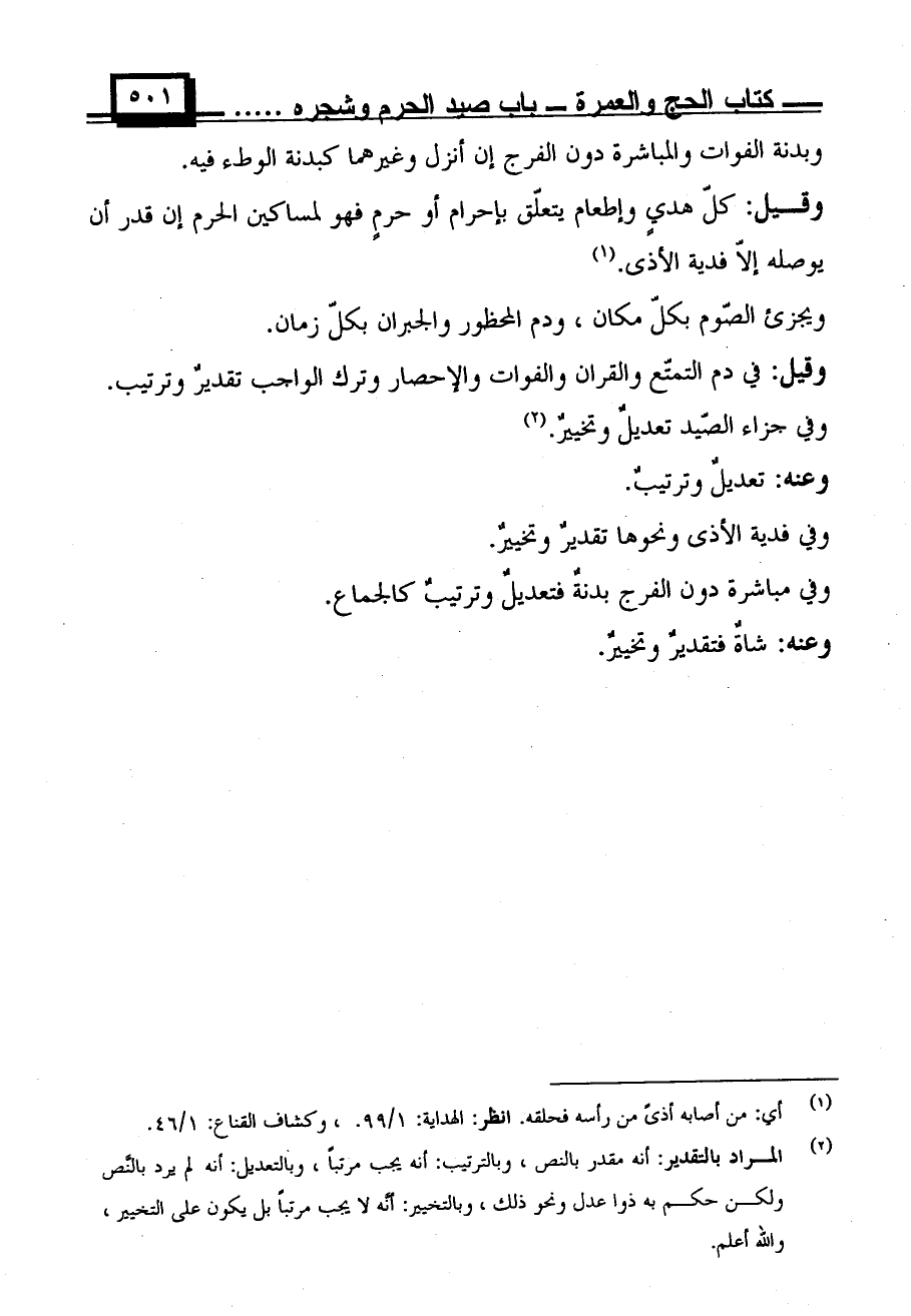 وفي فدية الأذى ونحوها تقدير وتخيير.