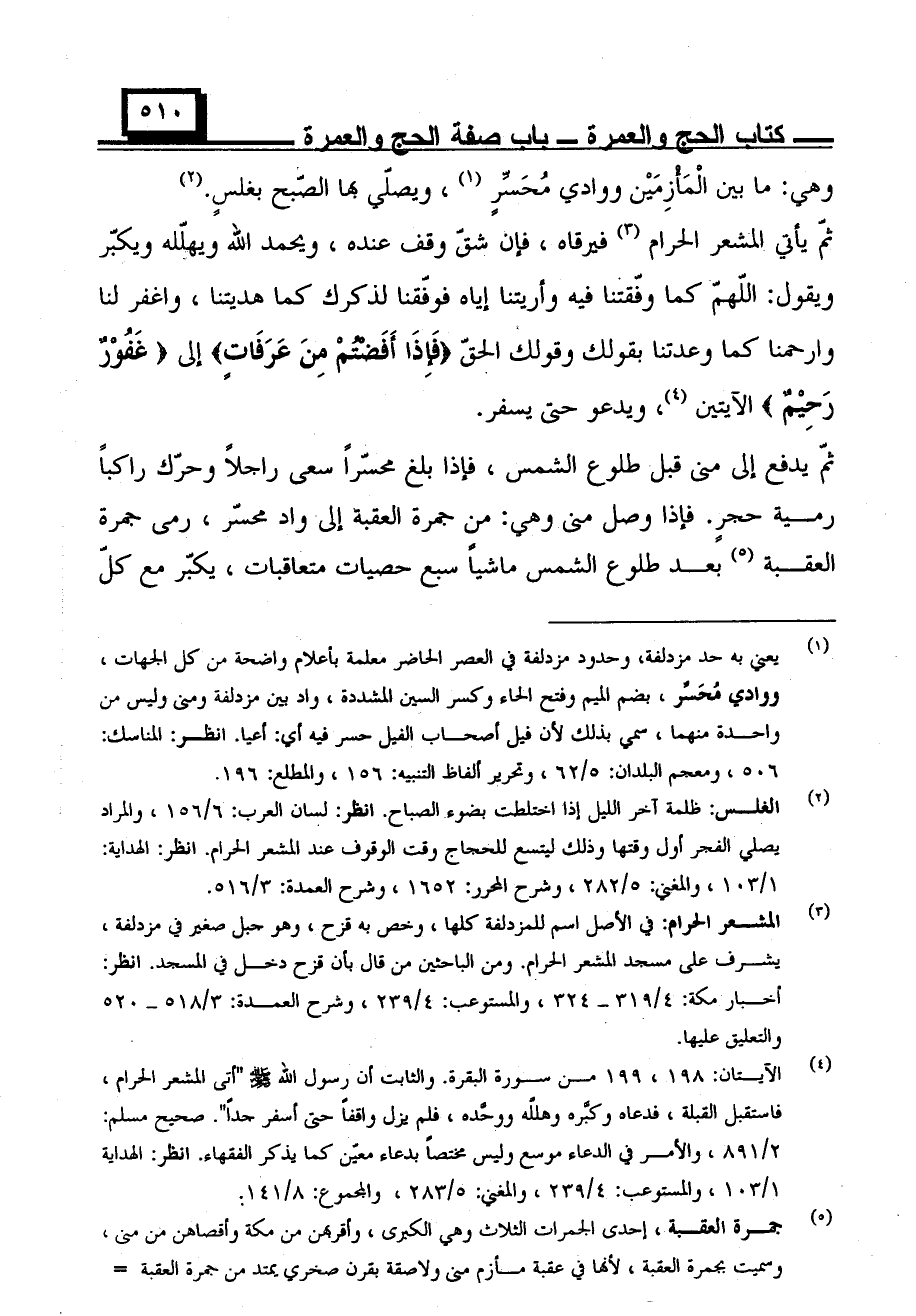 ثم يدفع إلى منى قبل طلوع الشمس، فإذا بلغ محسرًا سعى راجلًا وحرك راكبًا رمية حجرٍ. فإذا وصل منى وهي: من جمرة العقبة إلى واد محسر، رمى جمرة العقبة بعد طلوع الشمس ماشيًا سبع حصيات متعاقبات، يكبر مع كل