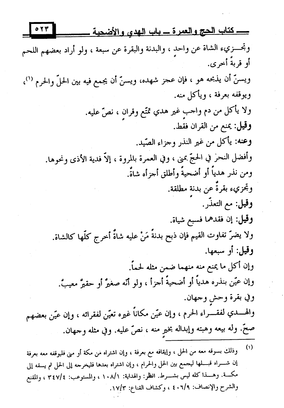 ويسن أن يذبحه هو، فإن عجز شهده، ويسن أن يجمع فيه بين الحل والحرم، ويوقفه بعرفة، ويأكل منه.