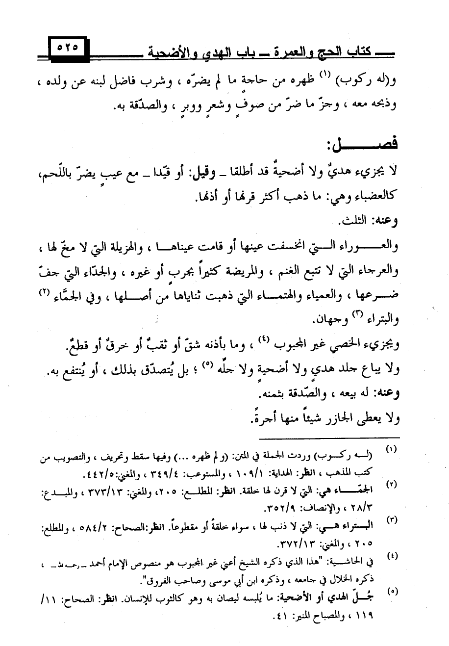 لا يجزيء هدي ولا أضحية قد أطلقا- وقيل: أو قيدا- مع عيبٍ يضر باللحم، كالعضباء وهي: ما ذهب أكثر قرنها أو أذنها.