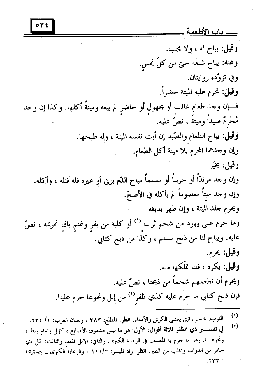 وما حرم على يهود من شحم ثرب أو كلية من بقرٍ وغنمٍ باقٍ تحريمه، نص عليه. ويباح لنا من ذبح مسلم، وكذا من ذبح كتابي.