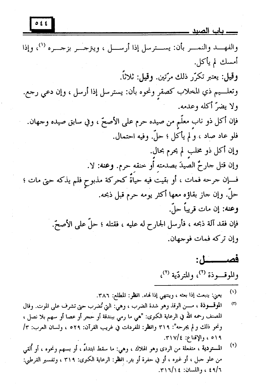 وتعليم ذي المحلاب كصقرٍ ونحوه بأن: يسترسل إذا أرسل، وإن دعي رجع. ولا يضر أكله وعدمه.