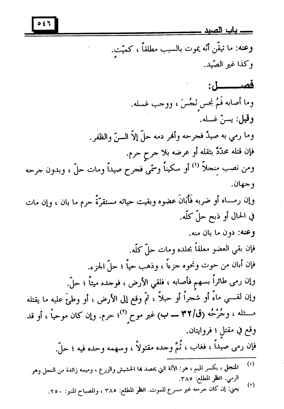 ومن نصب منجلًا أو سكينًا وسمى فجرح صيدًا ومات حل، وبدون جرحه وجهان.