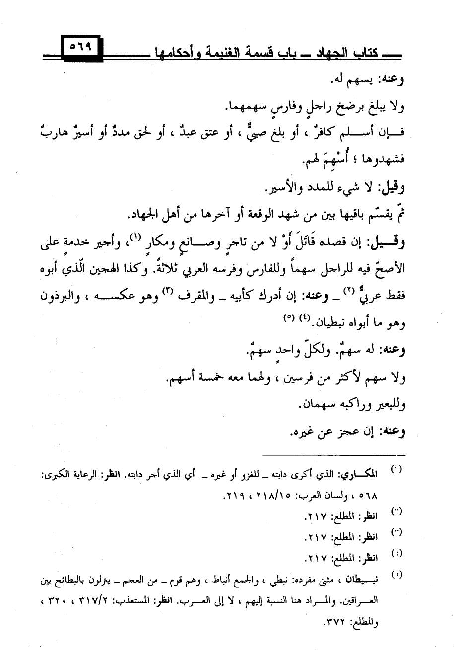 وقيل: إن قصده قاتل أو لا من تاجرٍ وصانعٍ ومكارٍ، وأجير خدمةٍ على الأصح فيه للراجل سهمًا وللفارس وفرسه العربي ثلاثةً. وكذا الهجين الذي أبوه فقط عربي- وعنه: إن أدرك كأبيه- والمقرف وهو عكسه، والبرذون وهو ما أبواه نبطيان.