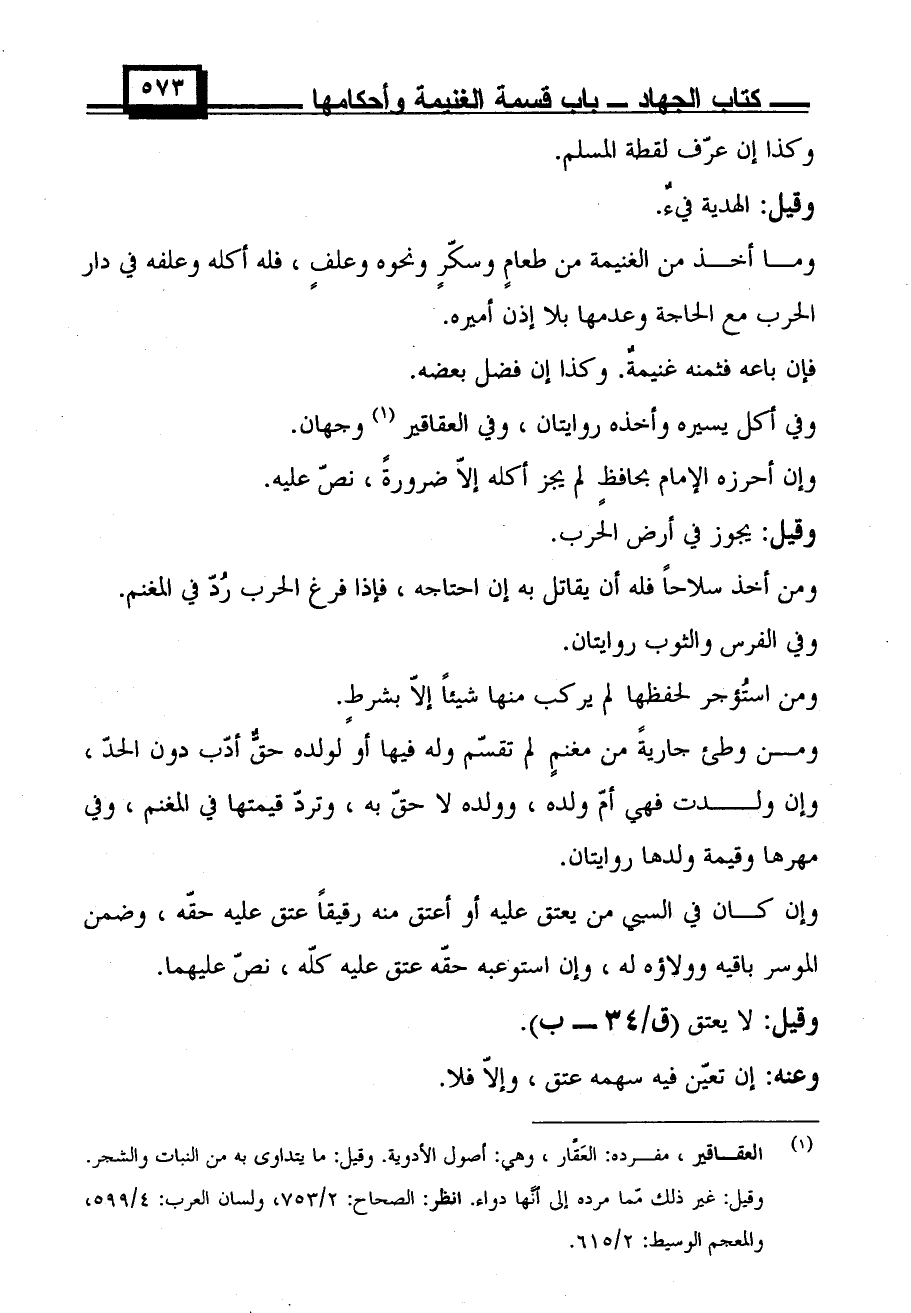 ومن أخذ سلاحًا فله أن يقاتل به إن احتاجه، فإذا فرغ الحرب رد في المغنم.