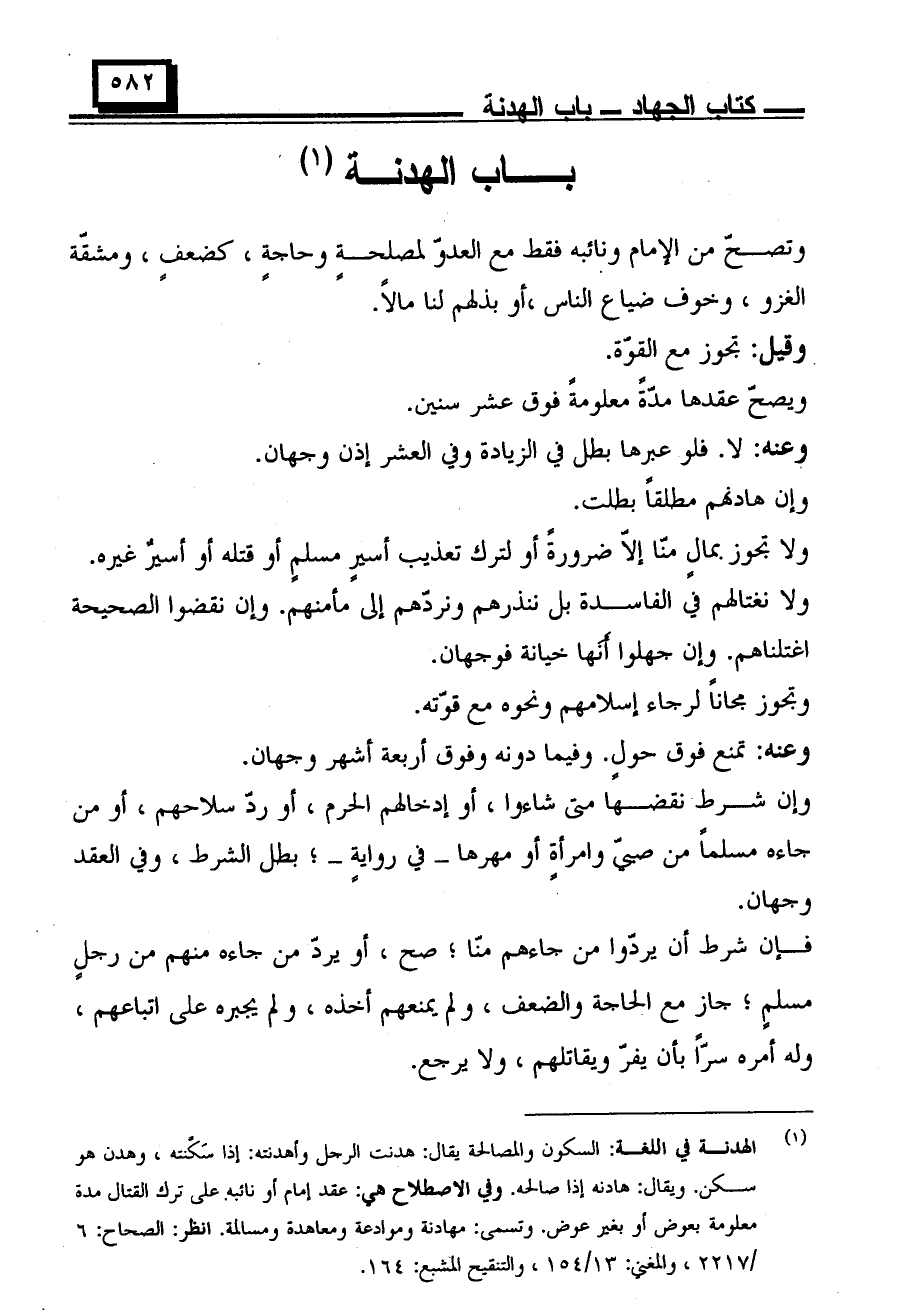 وتصح من الإمام ونائبه فقط مع العدو لمصلحةٍ وحاجةٍ، كضعفٍ، ومشقة الغزو، وخوف ضياع الناس، أو بذلهم لنا مالًا.