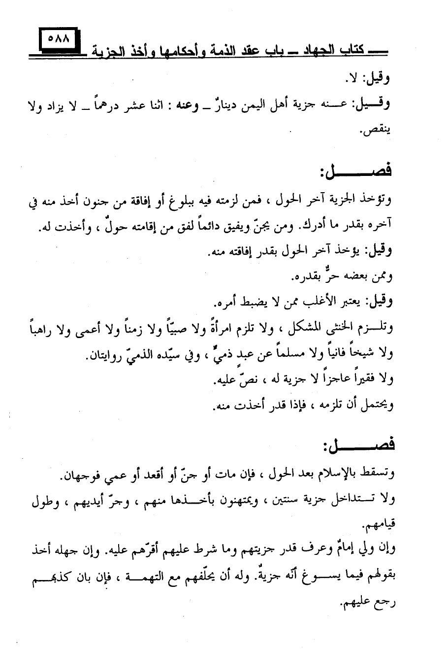 فصل: وتؤخذ الجزية آخر الحول، فمن لزمته فيه ببلوغ أو إفاقة من جنون أخذ منه في آخره بقدر ما أدرك. ومن يجن ويفيق دائمًا لفق من إقامته حولٌ، وأخذت له.