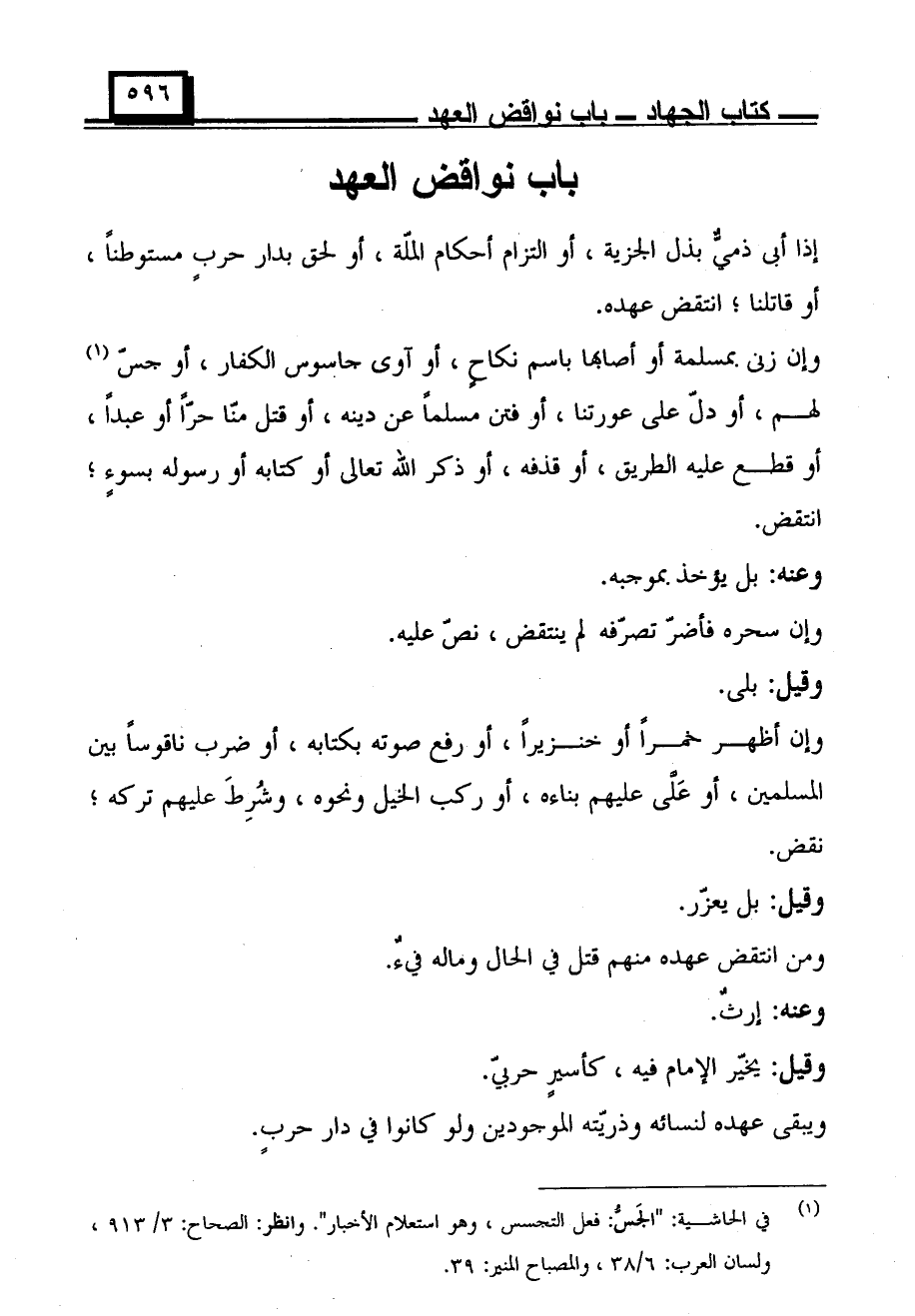 وإن زنى بمسلمة أو أصابها باسم نكاحٍ، أو آوى جاسوس الكفار، أو جس لهم، أو دل على عورتنا، أو فتن مسلمًا عن دينه، أو قتل منا حرًا أو عبدًا، أو قطع عليه الطريق، أو قذفه، أو ذكر الله تعالى أو كتابه أو رسوله بسوءٍ؛ انتقض.