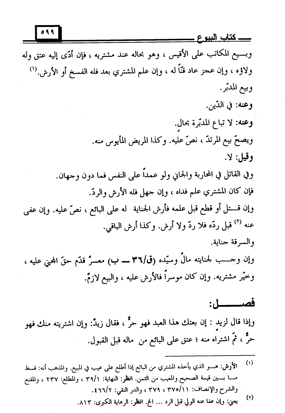 وبيع المكاتب على الأقيس، وهو بحاله عند مشتريه، فإن أدى إليه عتق وله ولاؤه، وإن عجز عاد قنًا له، وإن علم المشتري بعد فله الفسخ أو الأرش. وبيع المدبر.