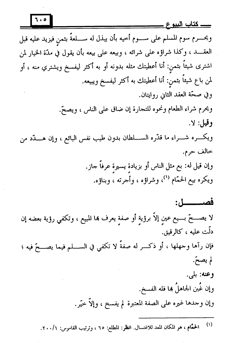 لا يصح بيع عين إلا برؤية أو صفة يعرف بها المبيع، وتكفي رؤية بعضه إن دلت عليه، كالرقيق.