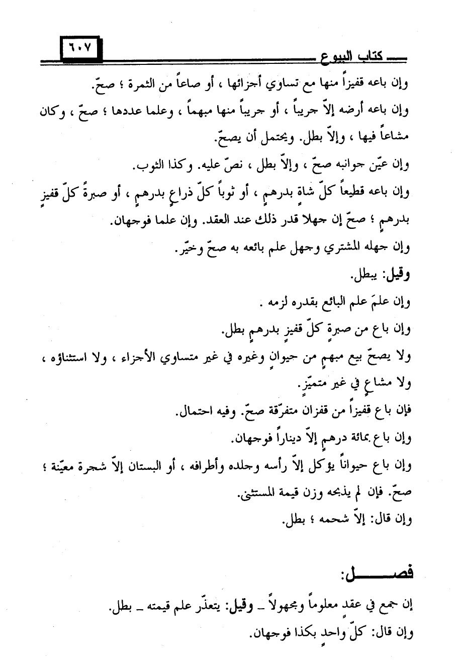 ولا يصح بيع مبهمٍ من حيوانٍ وغيره في غير متساوي الأجزاء، ولا استثناؤه، ولا مشاعٍ في غير متميزٍ.