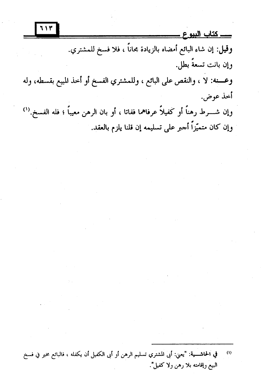 وقيل: إن شاء البائع أمضاه بالزيادة مجانًا، فلا فسخ للمشتري.
