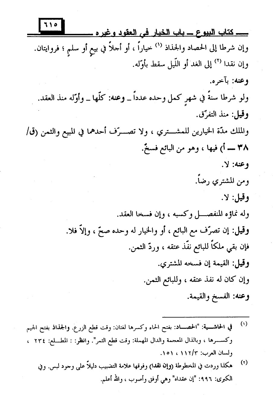 وإن شرطا إلى الحصاد والجذاذ خيارًا، أو أجلًا في بيعٍ أو سلمٍ؛ فروايتان. وإن نقدا إلى الغد أو الليل سقط بأوله.