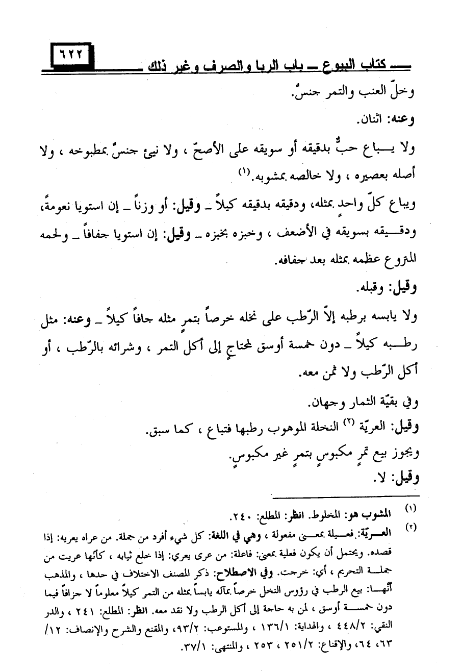 ويباع كل واحد بمثله، ودقيقه بدقيقه كيلًا- وقيل: أو وزنًا- إن استويا نعومةً، ودقيقه بسويقه في الأضعف، وخبزه بخبزه- وقيل: إن استويا جفافًا- ولحمه المتروع عظمه بمثله بعد جفافه.