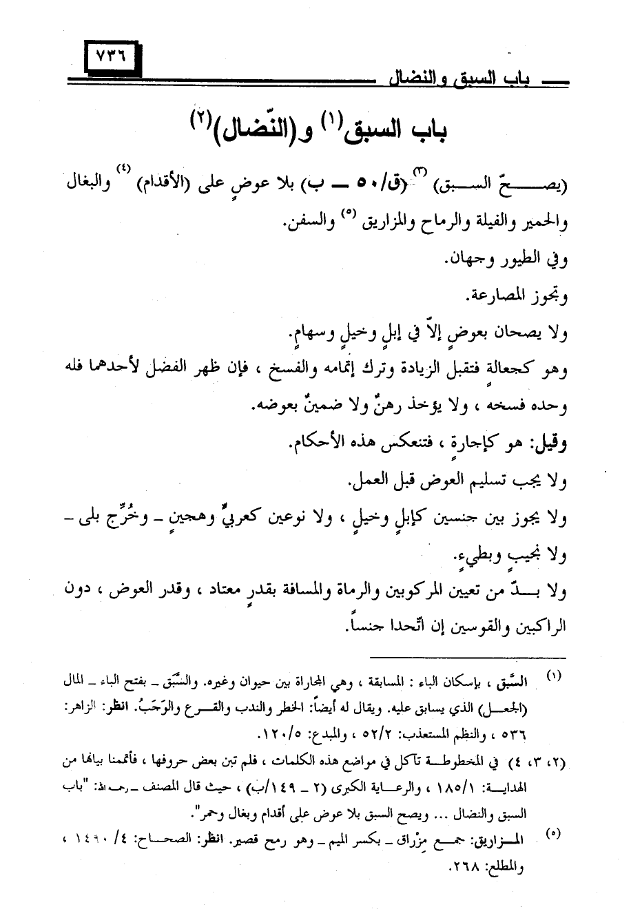 (يصح السبق) بلا عوض على (الأقدام) والبغال والحمير والفيلة والرماح والمزاريق والسفن.