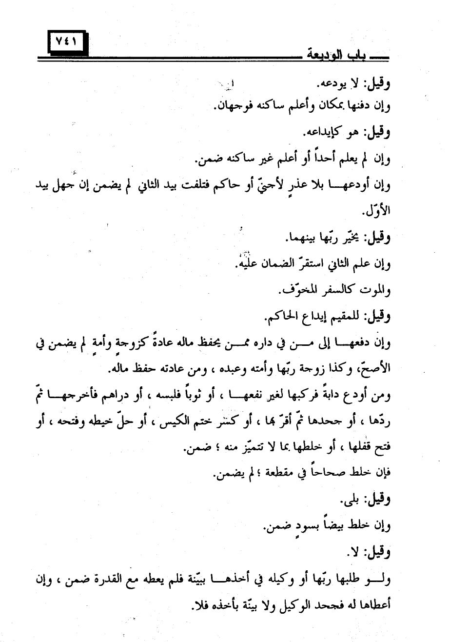 ومن أودع دابةً فركبها لغير نفعها، أو ثوبًا فلبسه، أو دراهم فأخرجها ثم ردّها، أو جحدها ثم أقر بها، أو كسر ختم الكيس، أو حل خيطه وفتحه، أو فتح قفلها، أو خلطها بما لا تتميز منه؛ ضمن.