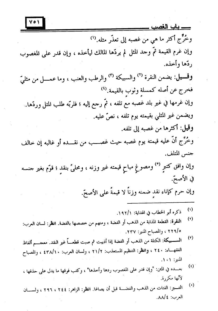 وقيل: يضمن النقرة والسبيكة والرطب والعنب، وما عمل من مثليّ فخرج عن أصله كمسلة وثوب بالقيمة.
