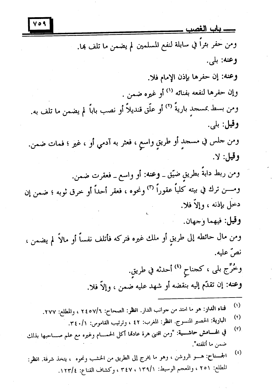 ومن حفر بئرًا في سابلة لنفع المسلمين لم يضمن ما تلف بها.