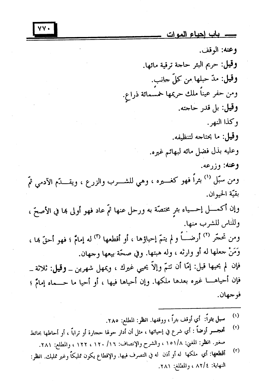 ومن حفر عينًا ملك حريمها خمسمائة ذراع.