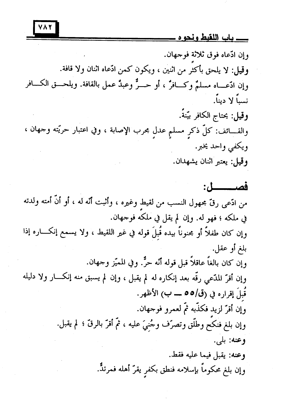 وإن ادّعاه مسلم وكافر، أو حر وعبد عمل بالقافة. ويلحق الكافر نسبًا لا دينًا.