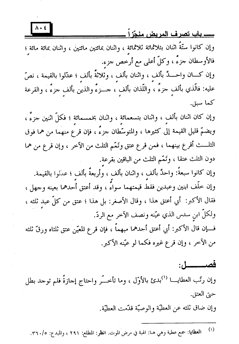 إن رتّب العطايا بدئ بالأول، وما تأخر واحتاج إجازة فلم توجد بطل حتى العتق.