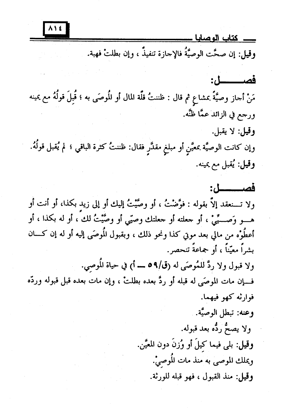 ولا قبول ولا ردَّ للمُوصَى له في حياة المُوصِي.