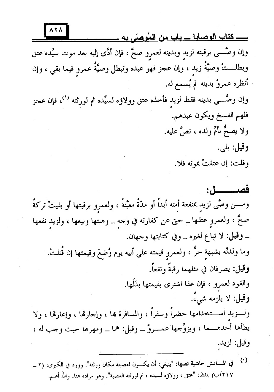 ومن وصَّى لزيد بمنفعة أمته أو مَّة معيَّنة، ولعمرو برقبتها أو بقيت تركة صحَّ، ولعمرو عتقها -حتى عن كفارته في وجهٍ- وهبتها وبيعها، ولزيدٍ نفعها -وقيل: لا تباع لغيره- وفي كتابتها وجهان.