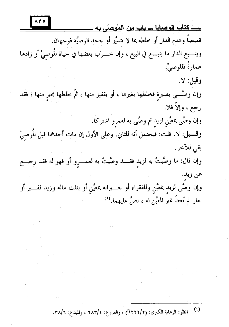 وإن وصى لزيد بمعيّن وللفقراء أو جيرانه بمعيّن او بثلث ماله وزيد فقير أو جار لم يُعطَ غير المعيّن له، نصَّ عليهما.