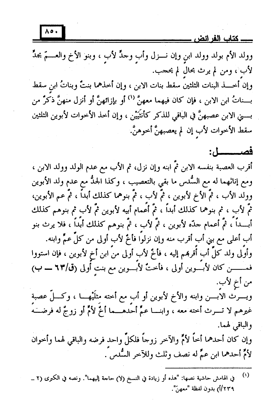 ويرث الابن وابنه والأخ لأبوين أو أبٍ مع أخته مثلَيْها، وكل عصبة غيرهم لا ترث أخته معه، وابنا عمّ أحدهما أخٌ لأمٍّ أو زوجٌ له فرضه والباقي لهما.