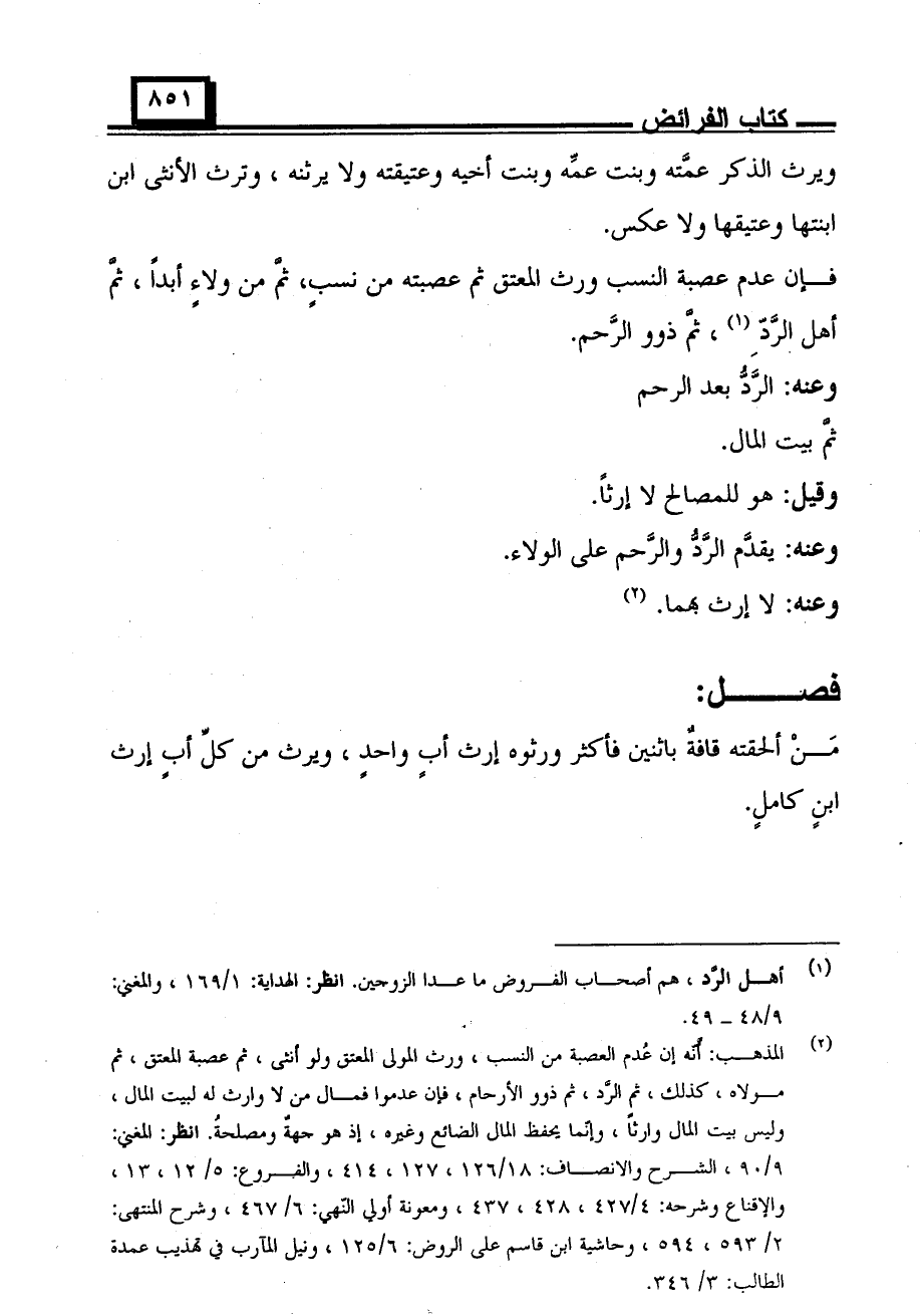 فإن عدم عصبة النسب ورث المعتق ثم عصبته من نسب، ثم من ولاء أبدًا، ثم أهل الرد، ثم ذوو الرحم.