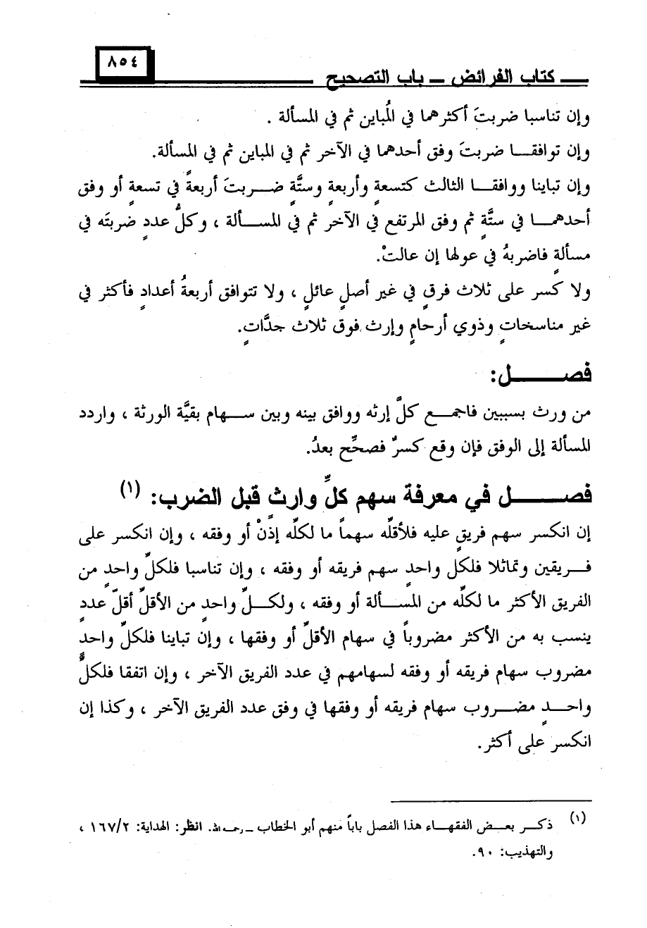 فصل في معرفة سهم كل وارث قبل الضرب: