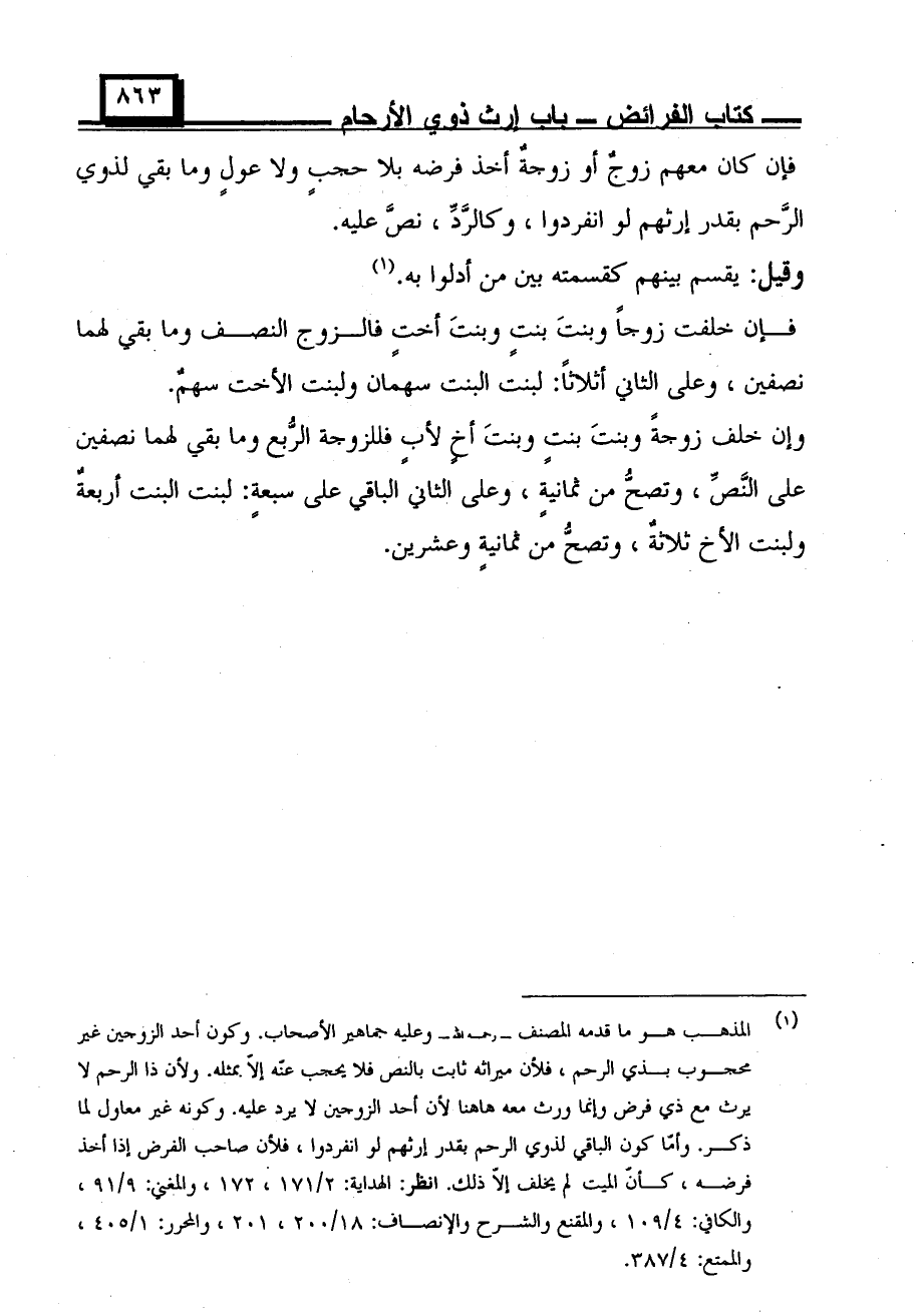 فإن كان معهم زوج أو زوجة أخذ فرضه بلا حجبٍ ولا عولٍ وما بقي لذوي الرحم بقدر إرثهم لو انفردوا، وكالرد، نصّ عليه.