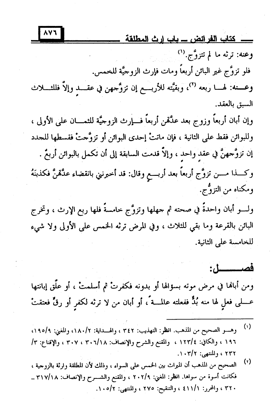 وإن أبان أربعًا وزوج بعد عدّتهن أربعا فإرث الزوجية للثمان على الأولى، وللبوائن فقط على الثانية، فإن ماتت إحدى البوائن أو تزوجت فقسطها للجدد إن تزوجهن في عقد واحد، وإلا قدمت السابقة إلى أن تكمل بالبوائن أربع.