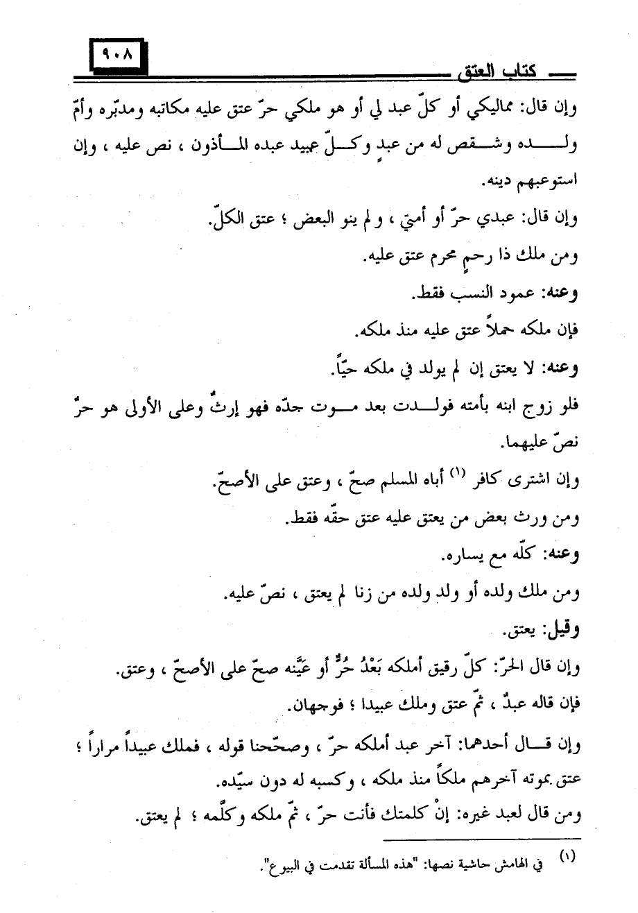 فإن قاله عبد، ثم عتق وملك عبيدا؛ فوجهان.