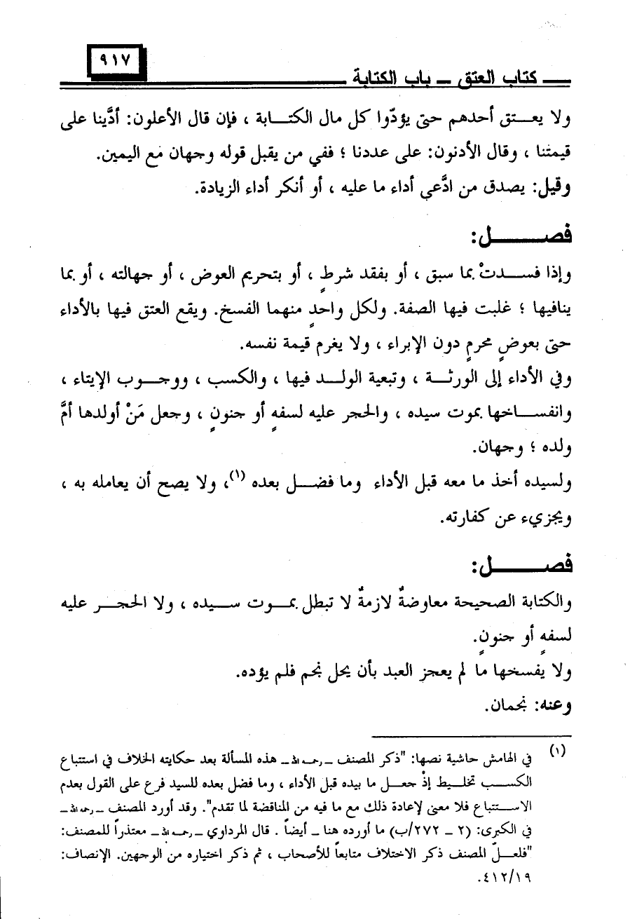 والكتابة الصحيحة معاوضة لازمة لا تبطل بموت سيده، ولا الحجر عليه لسفه أو جنون.