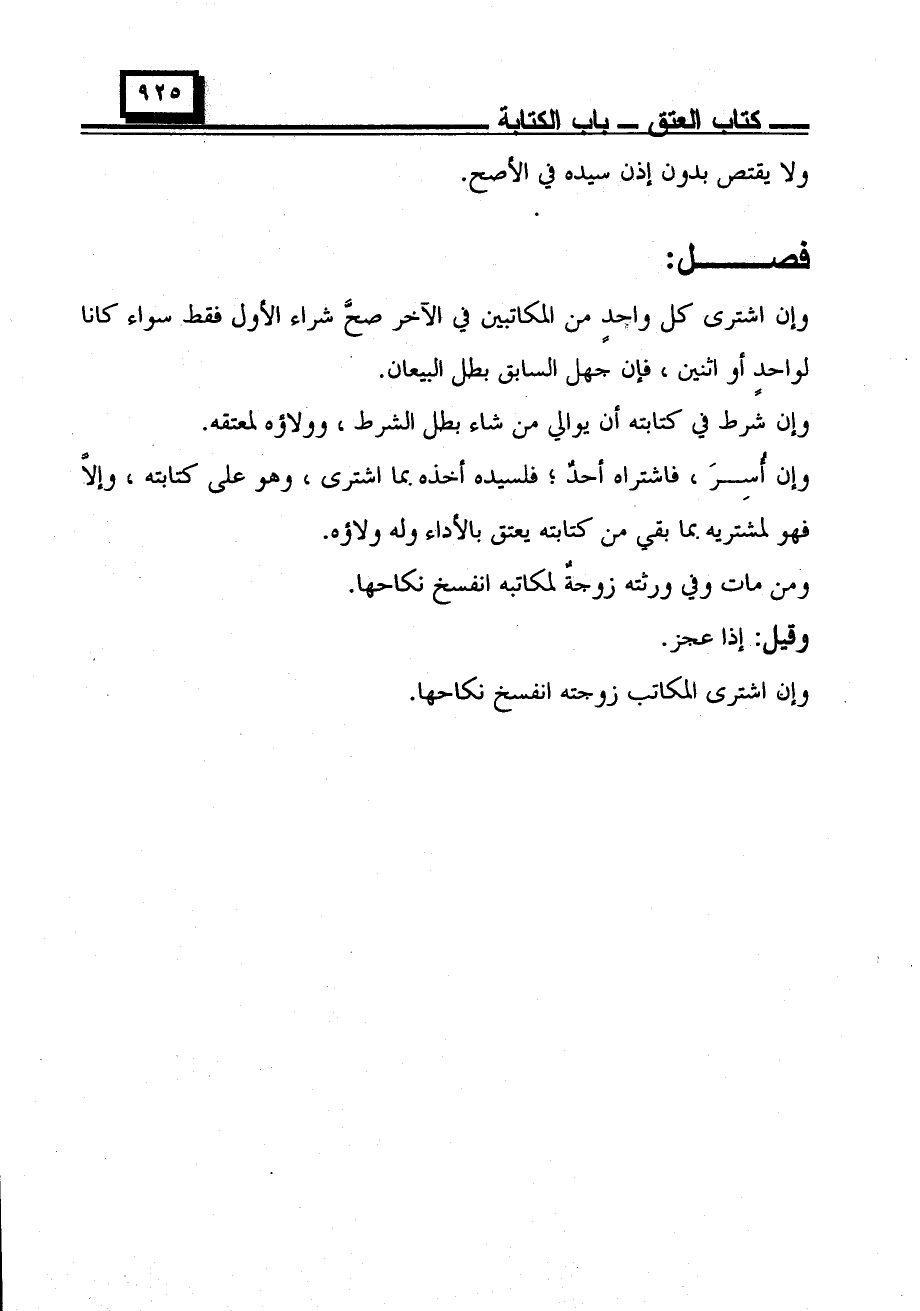 ومن مات وفي ورثته زوجة لمكاتبة انفسخ نكاحها.