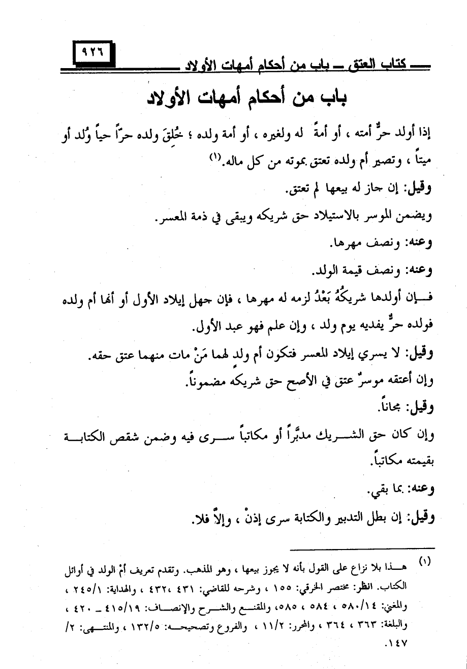إذا أولد حرٌّ أمته، أو أمة له ولغيره، أو أمة ولده؛ خُلِقَ ولده حرًّا حيًا وُلد أو ميتًا، وتصير أم ولده تعتق بموته من كل ماله.