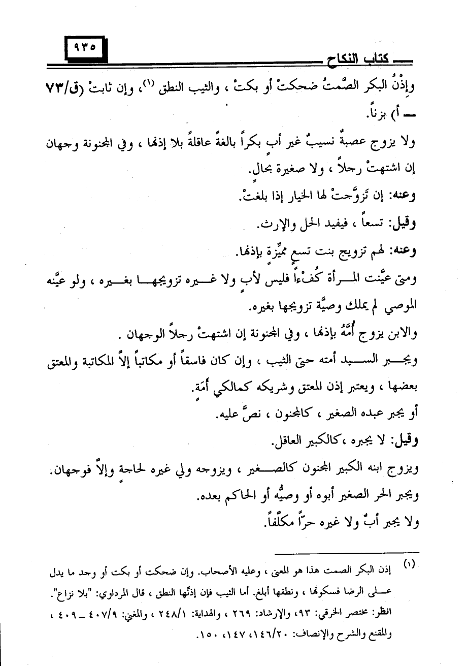 وإذْنُ البكر الصمتُ ضحكتْ أو بكتْ، والثيب النطق، وإن ثابت بزنًا.