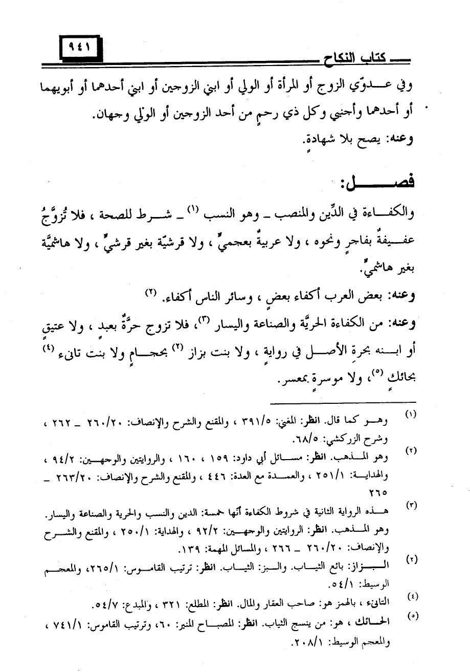 والكفاءة في الدين والمنصب _وهو النسب_ شرط للصحة، فلا تُزوَّج عفيفة فاجر ونحوه، ولا عربية بعجميٍّ، ولا قرشيّة بغير قرشيّ، ولا هاشمية بغير هاشميّ.