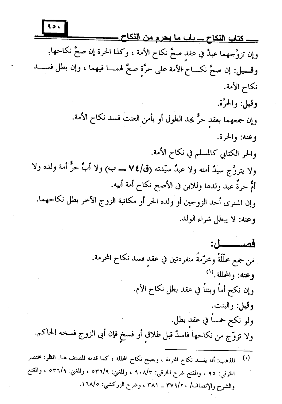ولا يتزوّج سيدٌ أمته ولا عبدٌ سيدته ولا أبٌ حرٌّ أمة ولده ولا أمٌّ حرةٌ عبد ولدها وللابن في الأصح نكاح أمة أبيه.