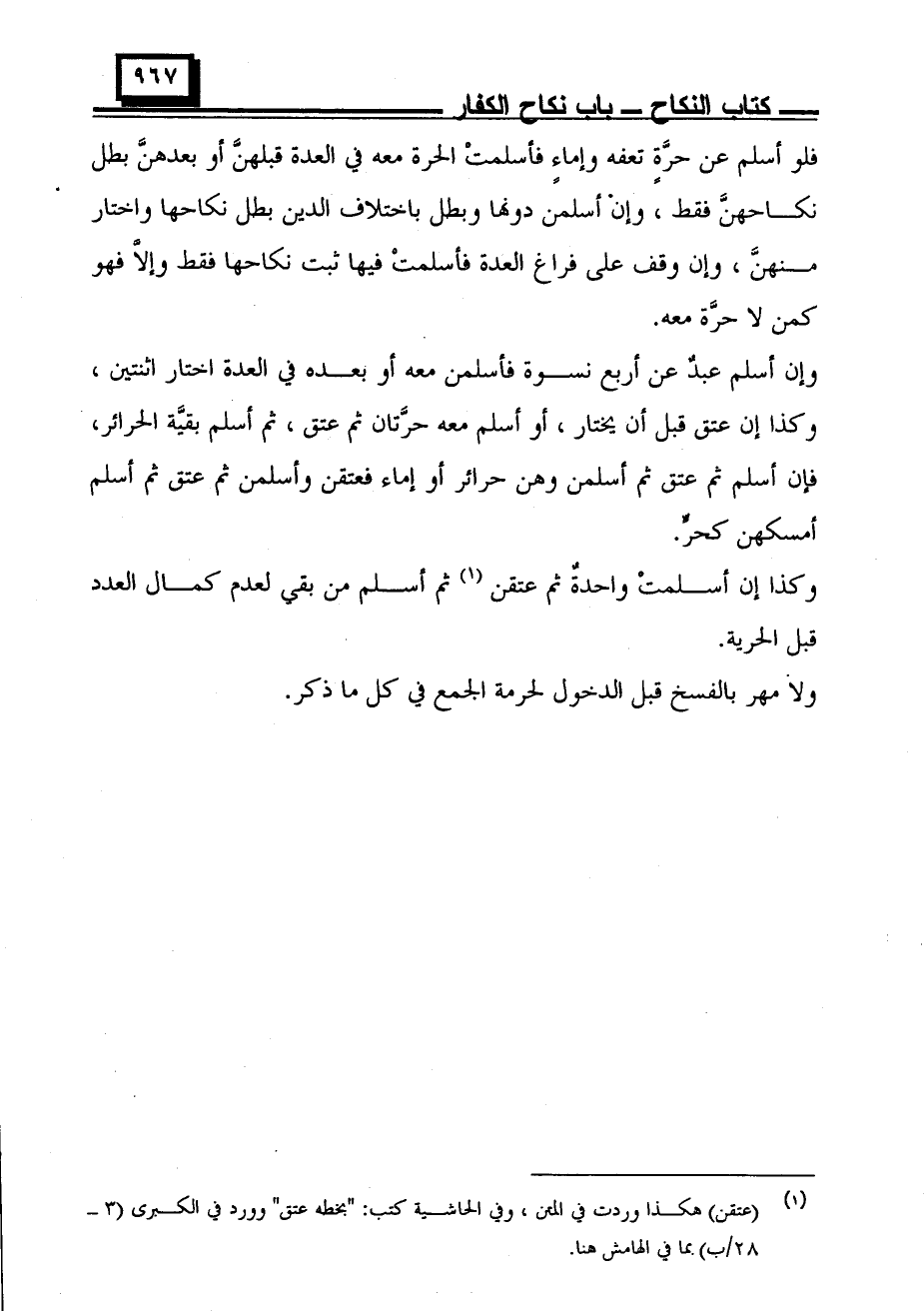 وكذا إن أسلمتْ واحدةٌ ثم عتقن ثم أسلم من بقي لعدم كمال العدد قبل الحرية.