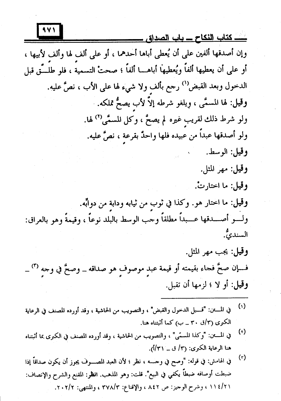 ولو أصدقها عبدًا مطلقًا وجب الوسط بالبلد نوعًا، وقيمةً وهو بالعراق: السنديُّ.